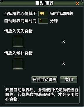另外,30级以上妖精会出现一个自动喂养按钮,点击按钮后会出现喂养界面: