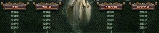 包括4个主神的高级进阶神职:战神、太阳、法师、和平四神,该类神职有名额限制,必须通过排名系统进行晋升