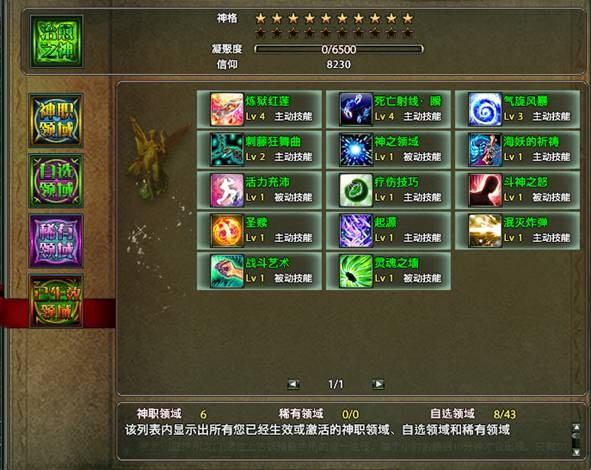 领域分为神职领域、自选领域和稀有领域。